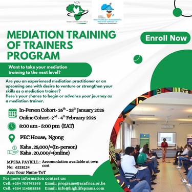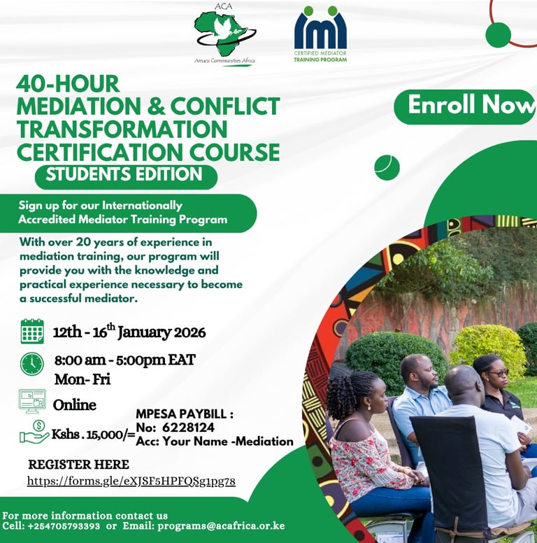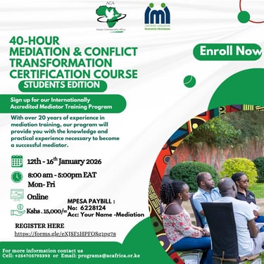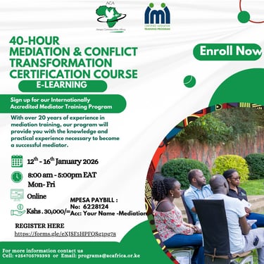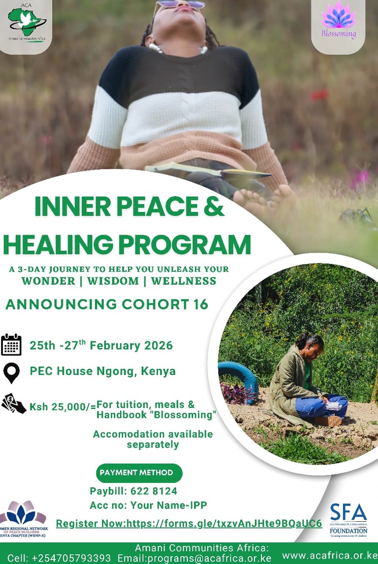 Amani Communities Africa (ACA) is a Non-governmental organization registered in Kenya in 2001. We create conducive spaces where people can find peace with themselves, others and their environments and empower them to impact the world around them for sustainable peace.