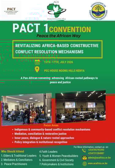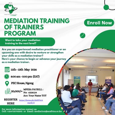 Amani Communities Africa (ACA) is a Non-governmental organization registered in Kenya in 2001. We create conducive spaces where people can find peace with themselves, others and their environments and empower them to impact the world around them for sustainable peace.